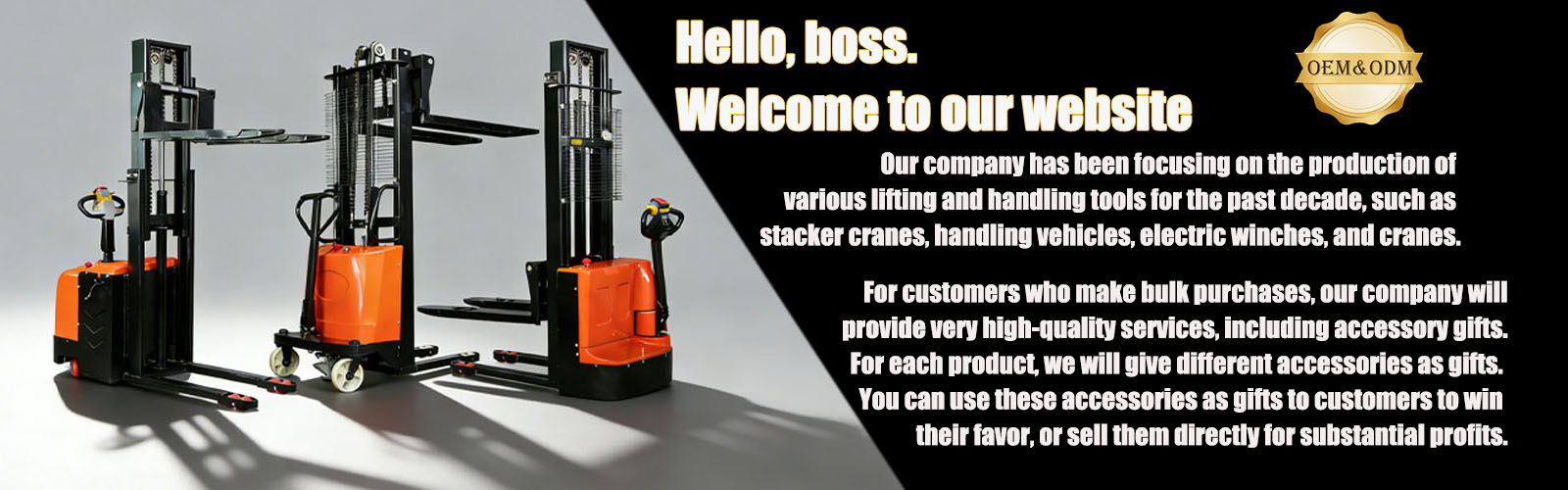Specializing in stacker cranes, handling vehicles, lifting tools, oil drum handling vehicles, and platform lifting equipment