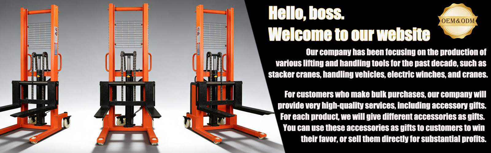 Specializing in stacker cranes, handling vehicles, lifting tools, oil drum handling vehicles, and platform lifting equipment